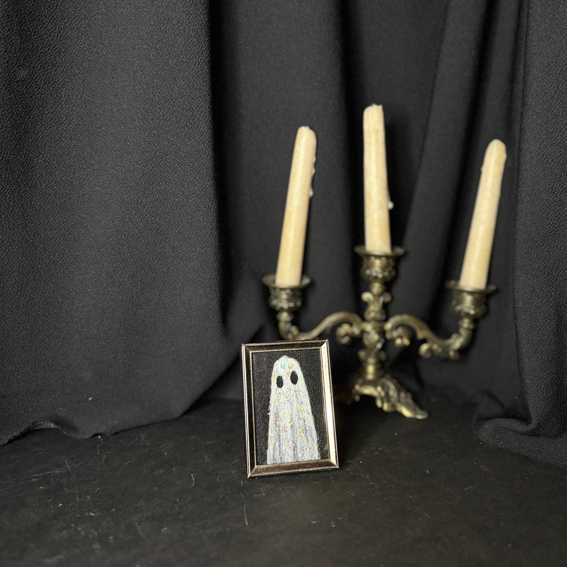 Introducing Glitz, the hand needle felted wool ghost with a mesmerizing holographic flake top coat. Catch the light and watch as this shimmering and glittering piece adds a touch of enchantment to any space.
